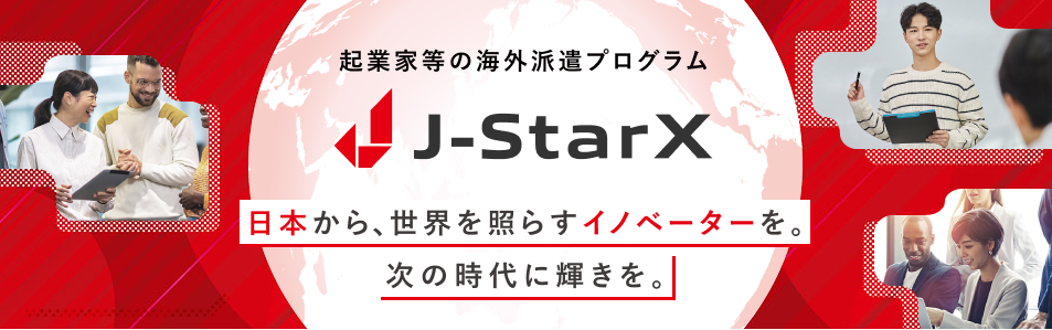 J-StarXは、経済産業省とジェトロが主催する起業家等の海外派遣プログラムです。世界展開を目指すスタートアップ企業に対し、海外進出(販路開拓、事業提携、資金調達等)を加速するため世界のトッププレイヤーと繋がり、学ぶ機会を提供しチャレンジを後押しします。